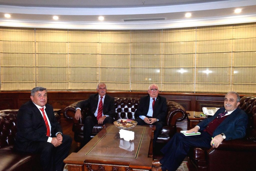 Sn. Ahmet Eşref FAKIBABA (T.C. Gıda Tarım ve Hayvancılık Bakanı) ‘nın da bulunduğu Türkiye Sulama Kooperatifleri Merkez Birliği Genel Başkanı Sn. A. Halis UYSAL, Ankara-Bolu-Çankırı-Kırıkkale-Yozgat Bölgesi Sulama Kooperatifleri Birliği Sn. Zafer ÖZKAN ve Amasya Sulama Kooperatifleri Birliğinden Sn. Ali ATAL ın bir araya gelerek ‘Su Sorunları’ hakkında gerçekleştirmiş oldukları toplantı.